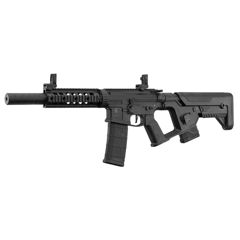Gearbox : Coques renforcées en métal gravées Lancer Tactical, engrenages et piston 14 dents acier, bushings acier 8mm, moteur torque, changement de ressort rapide (QD), câblage low résistance blindé, détente droite en métal